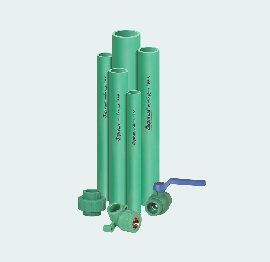 The Indo Green ppr pipe is the newest and best system for all plumbing applications. This pipe and the ppr pipe fittings are made for hot and cold water. This system is useful for many more purposes besides plumbing. Indo Green ppr pipes and fittings provide excellent long-term heat resistance and well-balanced mechanical qualities because of their unique chemical makeup. More significantly, the water passing through it is completely hygienic because it has no adverse biological impacts. Potable water applications are a great fit for these PPR pipes. The approach has been widely accepted worldwide and has been in operation for more than 30 years in China, Russia, the Gulf, and Europe. Supreme is one of the largest ppr pipe manufacturers in India.